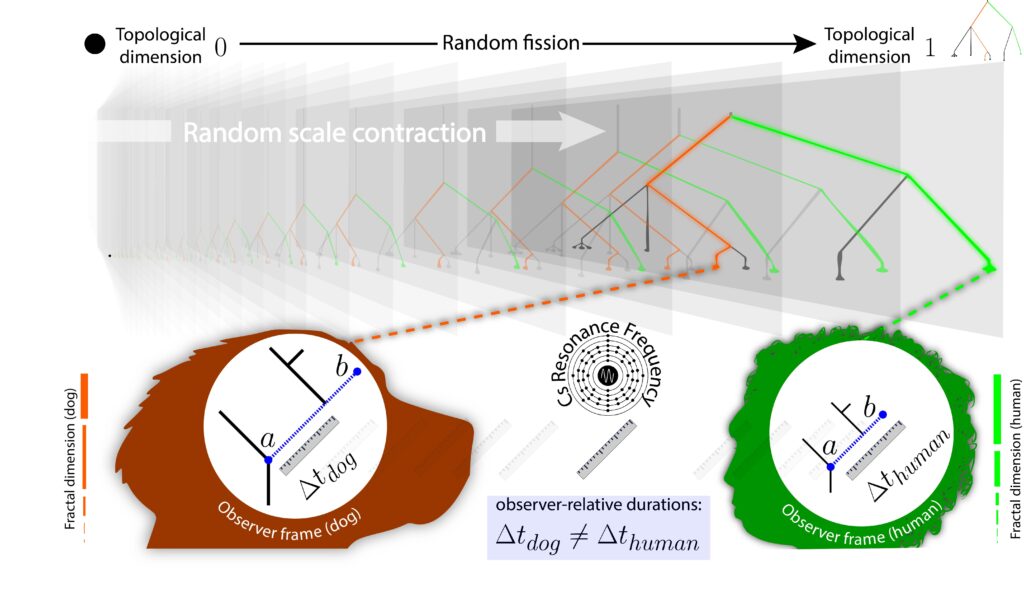 Description: Coauthored with Raissa D’Souza, this paper derives time from foundational princples of biology. Emergent from life, time is a multifractal geometry with as many dimensions as there are living things.